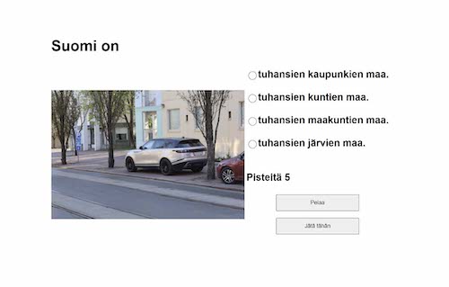 Kaiken summaajasiPelissä ratkaistaan yhteenlasku tehtäviä. Yhteenlaskettavien lukujen summaksi on neljä vastausvaihtoehtoa. Pelin nimi on Kaiken summaajasi. |